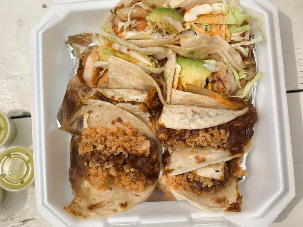 We met our tour guide Cori at The Long Goodbye, a bar with several food trucks where we enjoyed our first tacos from Granny’s Tacos. Their food truck location is about an 8-minute drive away. I had previously had their breakfast tacos, which were good, but the Rico (chicken, rice, Granny’s signature mole) and the shrimp (with cabbage, Granny’s chipotle dressing, avocado) were next-level!