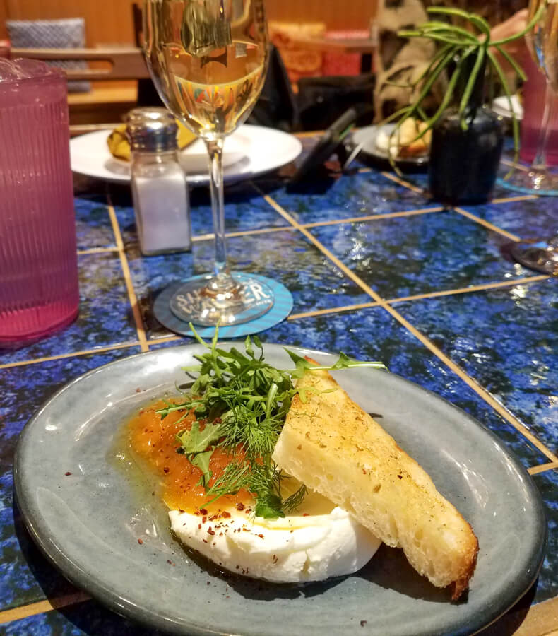 Our blogger group, Austin Food Bloggers Alliance, was invited to a tasting at East Austin Hotel’s restaurant Sixth and Waller and The Upside. We had a fun time trying their full-service dinner menu, beginning on Valentine’s Day. They’ll keep their counter-service breakfast and lunch menu, and now they’ll have a special menu in their beautiful restaurant.