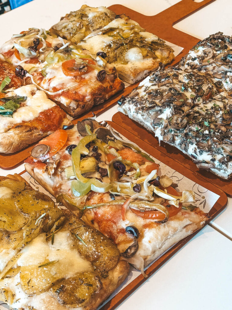 Have you ever had Romana-style pizza? The crust is thin and crispy, much like a flatbread. You can purchase by the slice at Baldinucci’s, so I tried the quattro funghi, pizza alla verdure, and lasagna. This restaurant is a great pizza option in Austin.