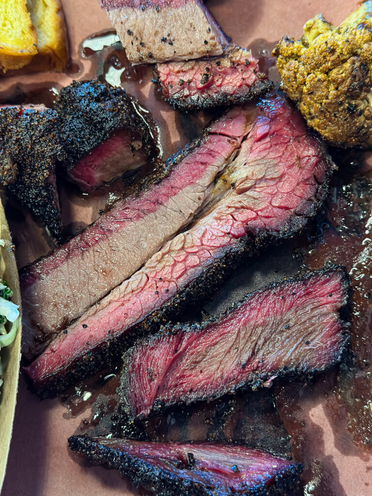 Driving in South Austin, we made a spontaneous decision to eat at Leroy and Lewis. After a two-hour wait in line, we enjoyed their award-winning barbecue – brisket and beef cheeks. I also love their kale Caesar slaw.