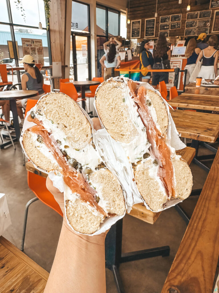 If you’re looking for a good breakfast sandwich, try the lox bagel at Nervous Charlie’s. The ratios are a bit uneven, as you can see, but it was satisfying.