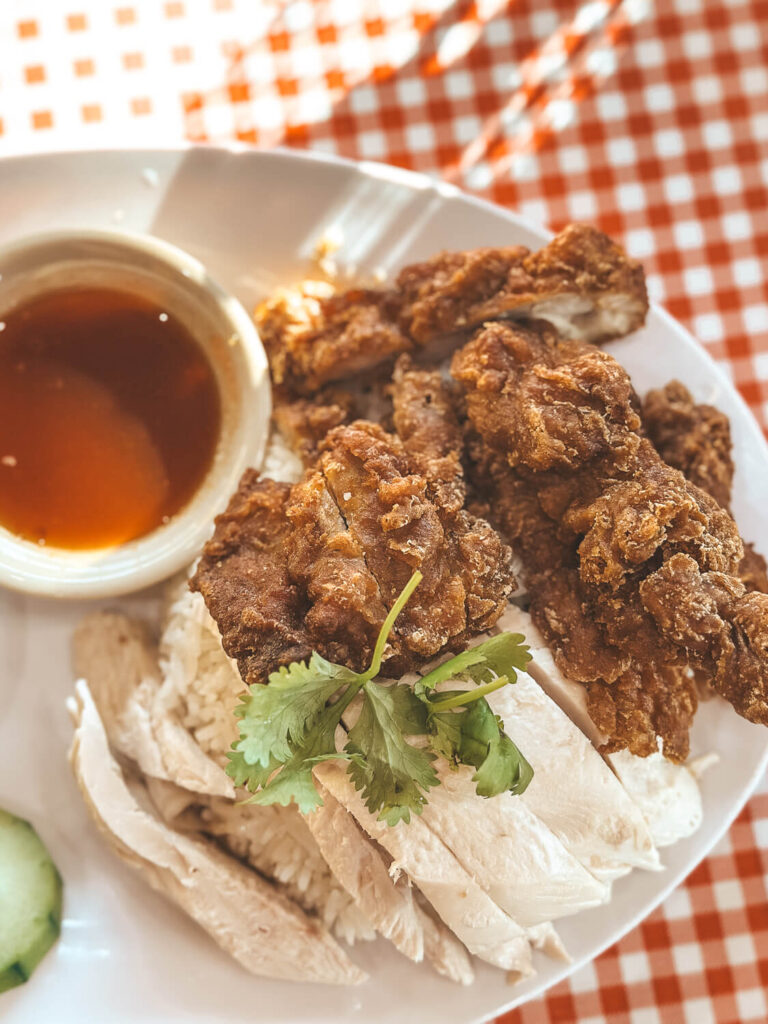 I finally made it to P Thai’s! They’re known for Thai-Chinese-style Hainan chicken and rice. I tried their OG combo dish with portions of the normal poached chicken and the fried chicken. It comes with chicken fat rice. It seems so simple, and it’s very satisfying.